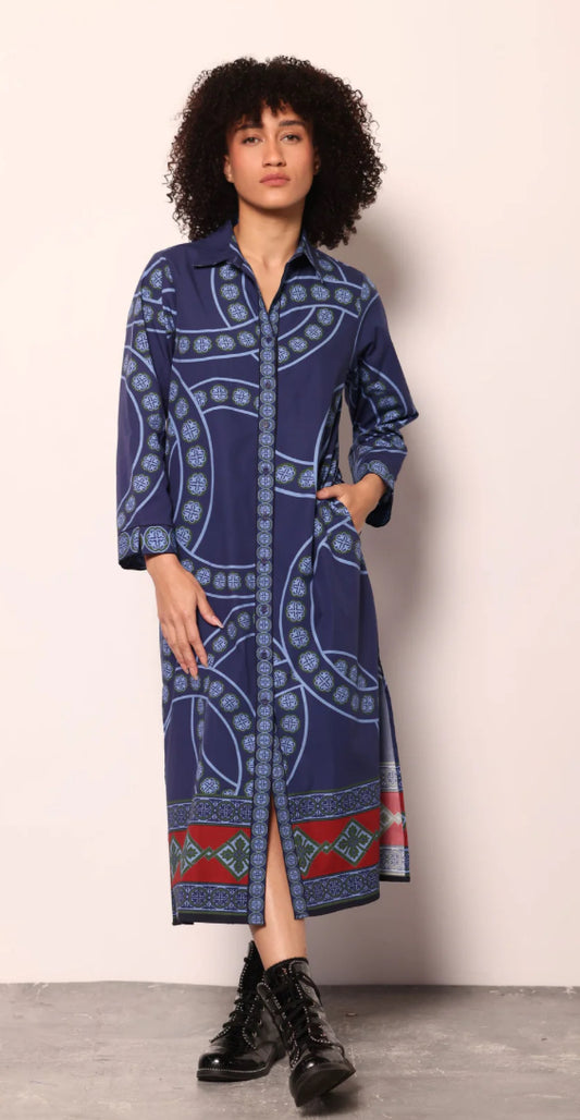 Chatham Dress in Dark Pink Dragon Print in Cotton Linen by Dizzy Lizzie