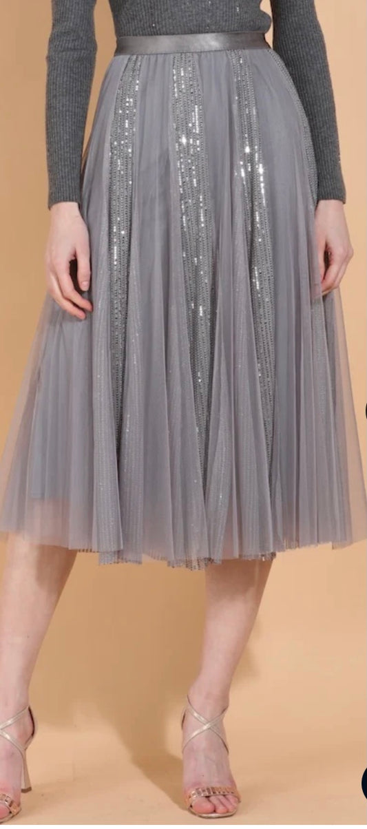 Sequined Tulle Skirt in Grey by Jessie Liu