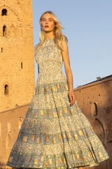 Sleeveless Smocked Maxi in Veranda Blue by Oliphant