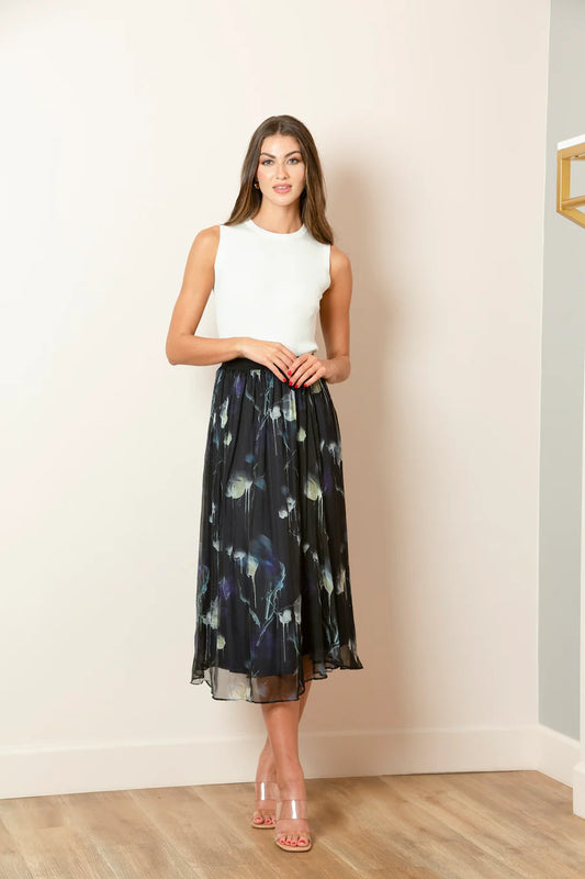 Printed Silk Gather Skirt In Black/Multi by Jessie Liu