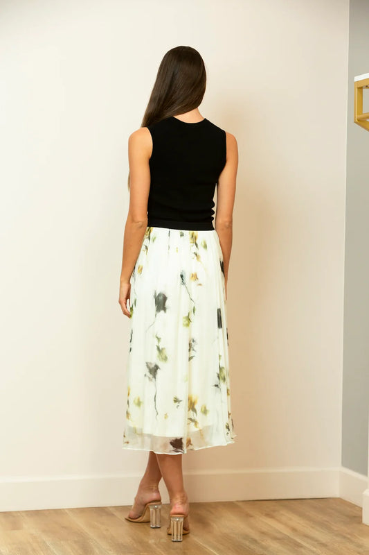Printed Silk Gather Skirt In White/Multi by Jessie Liu