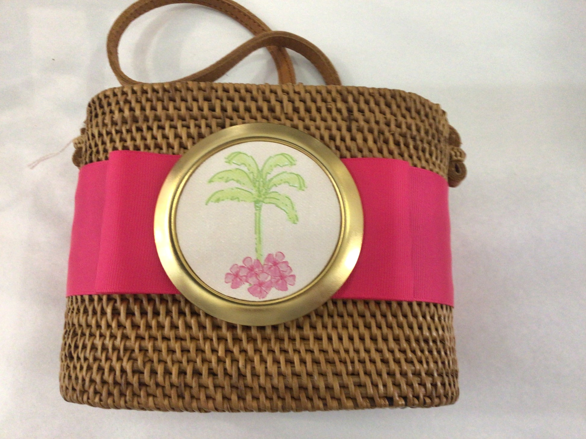 Charlotte Bag with Dark Pink Ribbon/ Palm Tree by Lisi Lerch