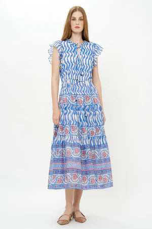The feminine silhouette of the Cinched Flirty Midi makes this our go to day dress. Intricately hand block printed patterns play across cotton voile, while the cinching tie waist allows you to tailor your perfect fit.