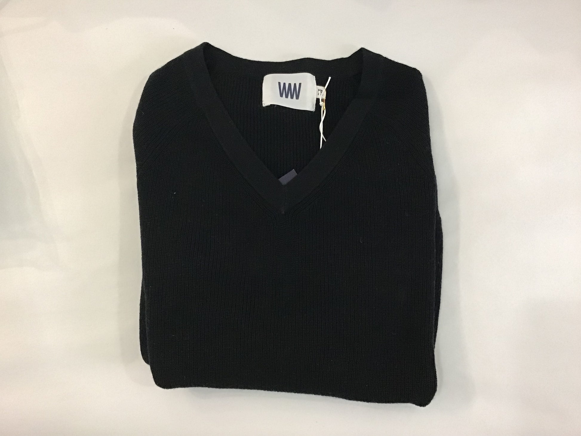 Shaker V Neck Cotton Sweater in Black by Windsor & White