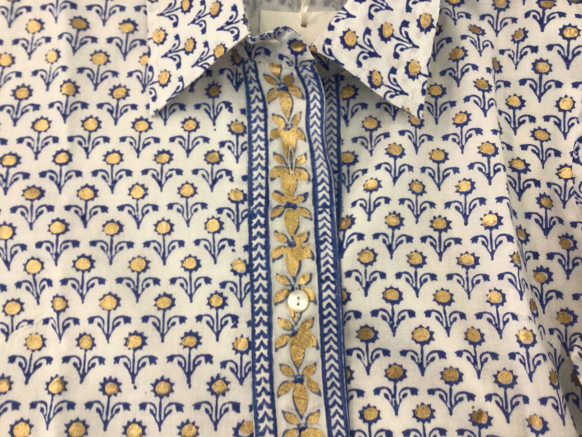 - All over hand block printed pattern with gold paint details