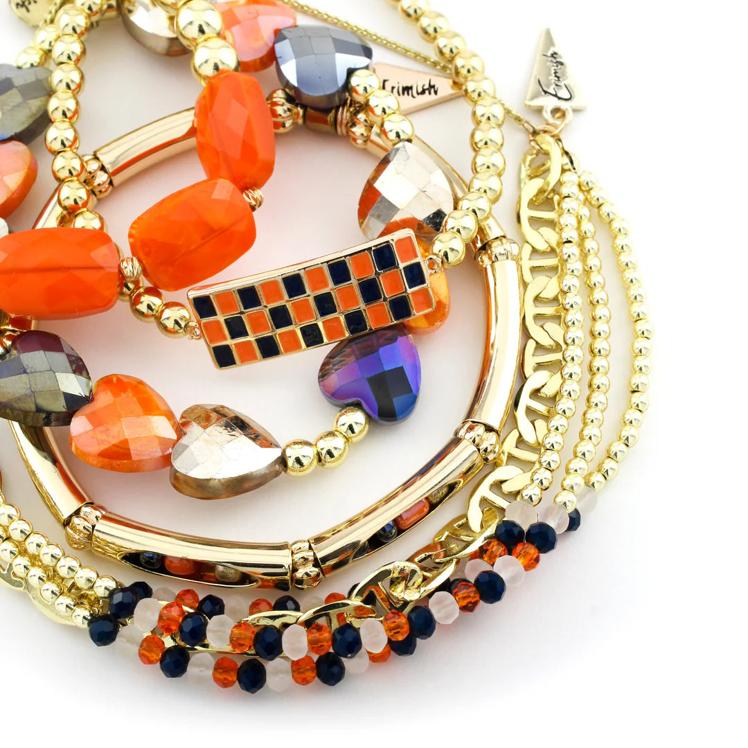 Get ready to elevate your game day style with our Tyler Gameday Bauble Box! This unique mix of detailed beading in bold orange, black, and gold will make you stand out in the crowd. Show off your team spirit and add a playful touch to your outfit with this quirky and fun accessory. Perfect for any fan!